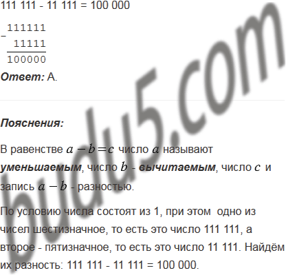 Чему равна разность шестизначного и пятизначного чисел, для записи которых использована только цифра 1?