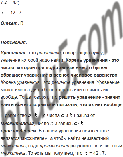 А) 42 - 7 Б) 42 + 7 В) 42 : 7 Г) 42