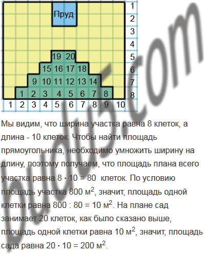 На рисунке изображён план земельного участка, площадь которого равна 800 м2. Чему равна площадь сада?