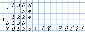 1) 70 537 : 54 = 1 306 (ост. 17);