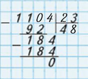 184 : 23 = 8. Пишу 8 в частном.