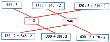 339 : 3 = 300 : 3 + 30 : 3 + 9 : 3 = 113