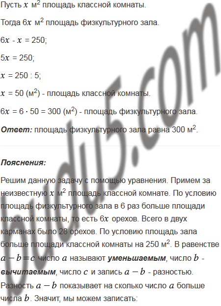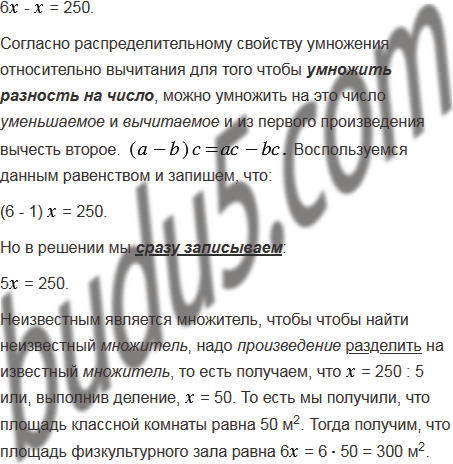 Площадь физкультурного зала в 6 раз больше площади классной комнаты. Найдите площадь зала, если она больше площади классной комнаты на 250 м2.