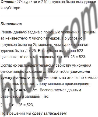 Из 523 цыплят, выведенных в инкубаторе, петушков оказалось на 25 меньше, чем курочек. Сколько курочек и сколько петушков было выведено в инкубаторе?