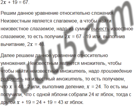 С двух яблонь собрали 67 кг яблок, причём с одной яблони собрали на 19 кг больше, чем с другой. Сколько килограммов яблок собрали с каждой яблони?