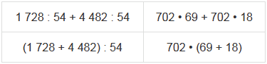 | (500 + 45) : 5 | (670 + 30) • 6 |