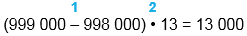 1) 999 000 - 998 000 = 1 000 2) 1 000 • 13 = 13 000 |