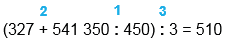 1) 270 : 9 = 30 2) 30 • 4 = 120 3) 120 + 880 = 1 000 4) 1 000 • 927 = 927 000 5) 927 000 + 3 = 927 003 |