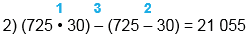 2) На сколько произведение чисел 725 и 30 больше разности этих чисел?