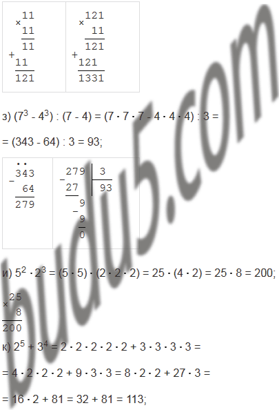 в) (5 + 4)2;             ж) (7 + 4)3;                                л) (30 : 3)5 - 1003;
