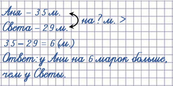 У Ани в коллекции 35 марок, а у Светы - 29 марок. На сколько марок у Ани больше, чем у Светы?