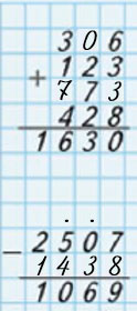 Складываю сотни: 3 + 1 + 4 = 8, да ещё 1. 8 + 1 = 9. А в сотнях получилось 6. Значит, нужно добавить число 7, так как 9 + 7 = 16.