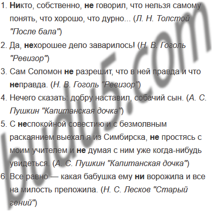Составьте или подберите из хрестоматии по русской литературе пять-шесть предложений с частицами не, ни и при ставками не-, ни-.