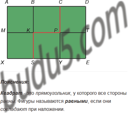Сколько квадратов изображено на рисунке 75? Какие из них равны между собой? Разделите прямоугольник на две равные части, каждая из которых состоит из целых квадратов, двумя способами.