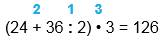 1) 36 : 2 = 18 2) 24 + 18 = 42 3) 42 • 3 = 126 |
