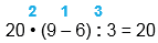 1) 9 - 6 = 3 2) 3 : 3 = 1 3) 20 • 1 = 20 |