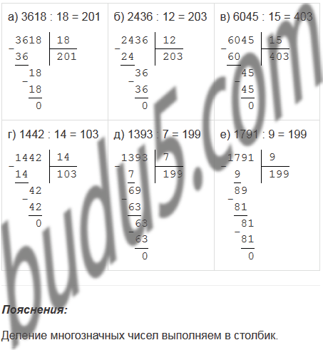 а) 3618 : 18; в) 6045 : 15; д) 1393 : 7;