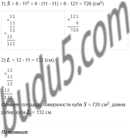 Найдите площадь поверхности и сумму длин ребер куба, ребро которого 11 см.