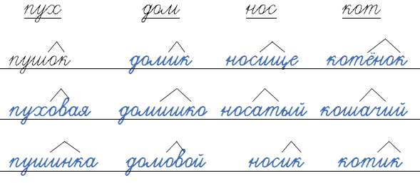 Прочитайте. Образуйте от данных слов однокоренные слова при помощи суффиксов. Запишите слова с столбик, выделите суффиксы.