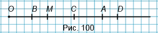 Укажите координаты точек А, В, С и D, если М(10) (рис. 100). Сравните координаты точек В и С; С и D.