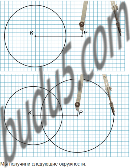 Отметьте две точки K и Р так, чтобы KP = 6 см. Постройте окружность с центром K и радиусом 5 см и окружность с центром Р и радиусом 4 см. Пересекаются ли эти окружности?