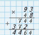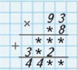 Умножаем на единицы. 3 • 8 = 24. Пишу 4, а 2 дес. прибавлю к десяткам после умножения десятков.