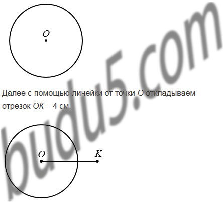 Начертите окружность с центром в точке О и радиусом 2 см 6 мм (рис. 114). Отметьте такую точку К, чтобы ОК = 4 см. Найдите с помощью циркуля на окружности точки, удаленные от точки К на 3 см.