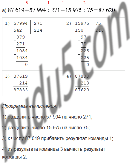 а) 87 619 + 57 994 : 271 - 15 975 : 75;