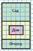 12. 1) Рассмотри план дачного участка. Определи его площадь, площадь дома, сада и огорода, если 1 см2 изображает 50 м2.