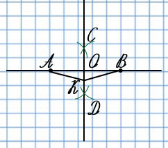Проведи прямую через точки С и D. Точку пересечения прямых обозначь буквой О. Проверь, что все 4 угла с вершиной в точке О прямые.