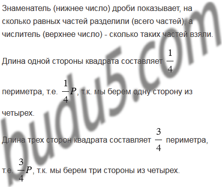 Какую часть периметра квадрата составляет длина одной стороны? длина трех сторон?