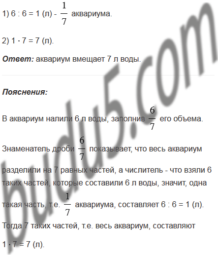 В аквариум налили 6 л воды, заполнив его объема. Сколько литров воды вмещает аквариум?