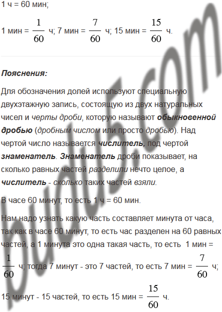 Сколько минут в часе? Какую часть часа составляет 1 мин; 7 мин; 15 мин?