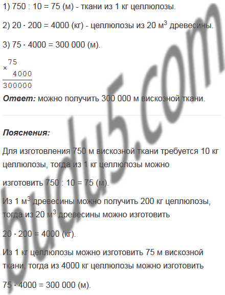 Для изготовления 750 м вискозной ткани требуется 10 кг целлюлозы. Из 1 м3 древесины можно получить 200 кг целлюлозы. Сколько метров вискозной ткани можно получить из 20 м3 древесины?