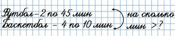 Ответ: на 50 мин дольше длится игра в футбол, чем в баскетбол.