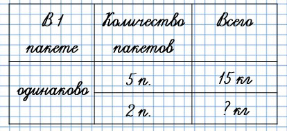 4. Дедушка купил 5 одинаковых пакетов с картофелем, общая масса которых 15 кг. Витя помог дедушке и донёс 2 пакета. Сколько килограммов картофеля нёс Витя?