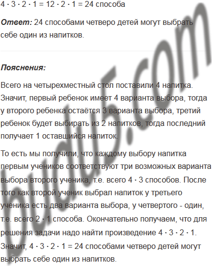 К полднику в детском саду на четырёхместный стол поставили сок, молоко, какао и компот. Сколькими способами четверо детей могут выбрать себе один из напитков?