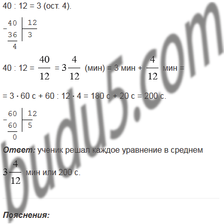 Ученик решил 12 уравнений за 40 мин. Сколько минут в среднем он решал каждое уравнение? Сколько секунд он потратил на решение каждого уравнения?