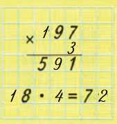 7 • 3 = 21. 2 дес. запомню и прибавлю к десяткам после умножения десятков.