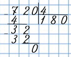 180 • 4 - это 18 дес. • 4. Так как при умножении на ноль любого числа получается 0, то записываем 4 под последней цифрой, отличной от нуля. Дальше выполняю умножение 18 • 4, а ноль переношу сразу в результат.