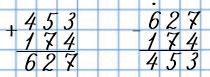 Пишу (единицы под единицами, десятки под десятками, сотни под сотнями): 453 + 174.