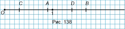 Укажите координаты точек А, В, С, D (рис. 138). Какое расстояние в единичных отрезках между точками О и С, О и D, А и В, С и D?
