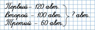 (480 + 120) : 3 = 200 1) 480 + 120 = 600 2) 600 : 3 = 200 |