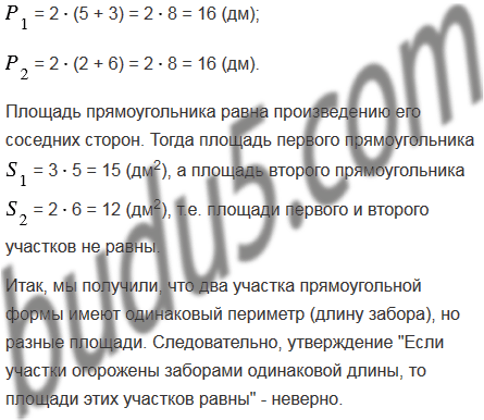 Согласны ли вы с утверждением: "Если участки огорожены заборами одинаковой длины, то площади этих участков равны"? Подтвердите свое мнение примерами.