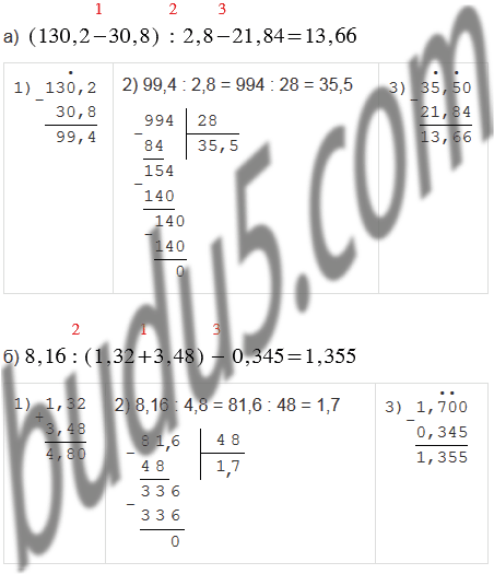 а) (130,2 - 30,8) : 2,8 - 21,84;