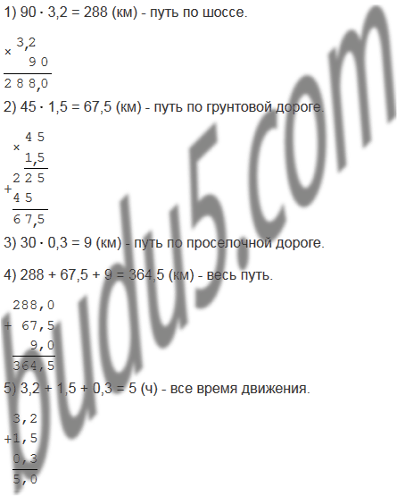 Автомобиль двигался 3,2 ч по шоссе со скоростью 90 км/ч, затем 1,5 ч по грунтовой дороге со скоростью 45 км/ч, наконец, 0,3 ч по проселочной дороге со скоростью 30 км/ч. Найдите среднюю скорость движения автомобиля на всем пути.