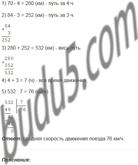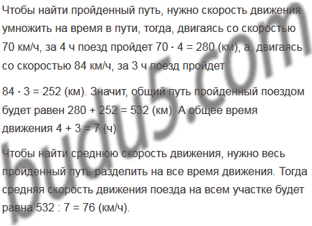 Поезд шел 4 ч со скоростью 70 км/ч и 3 ч со скоростью 84 км/ч. Найдите среднюю скорость поезда на пройденном за это время пути.