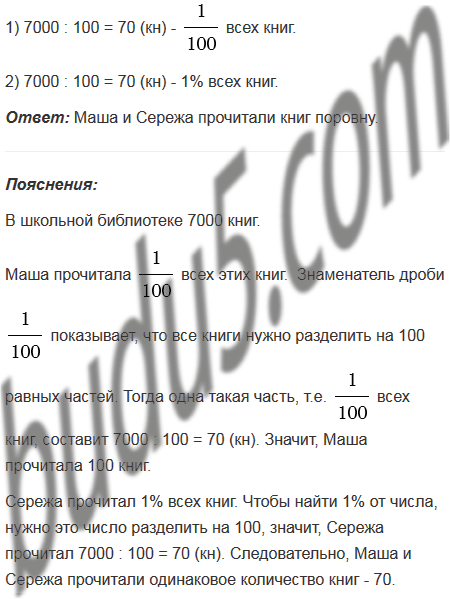 Сережа прочитал 1% всех книг школьной библиотеки. Сравните число библиотечных книг, прочитанных Машей и Сережей.