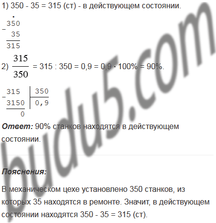 В механическом цехе установлено 350 станков, из которых 35 находятся в ремонте. Сколько процентов станков находятся в действующем состоянии?
