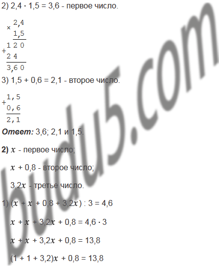 1) Первое число в 2,4 раза больше третьего, а второе число на 0,6 больше третьего числа. Найдите эти три числа, если их среднее арифметическое равно 2,4.